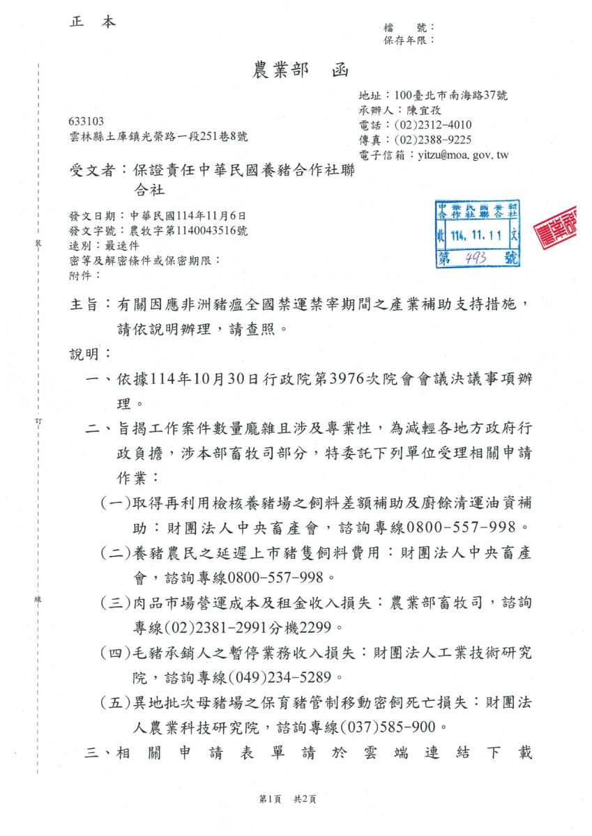 因應非洲豬瘟全國禁運禁宰期間之產業補助支持措施