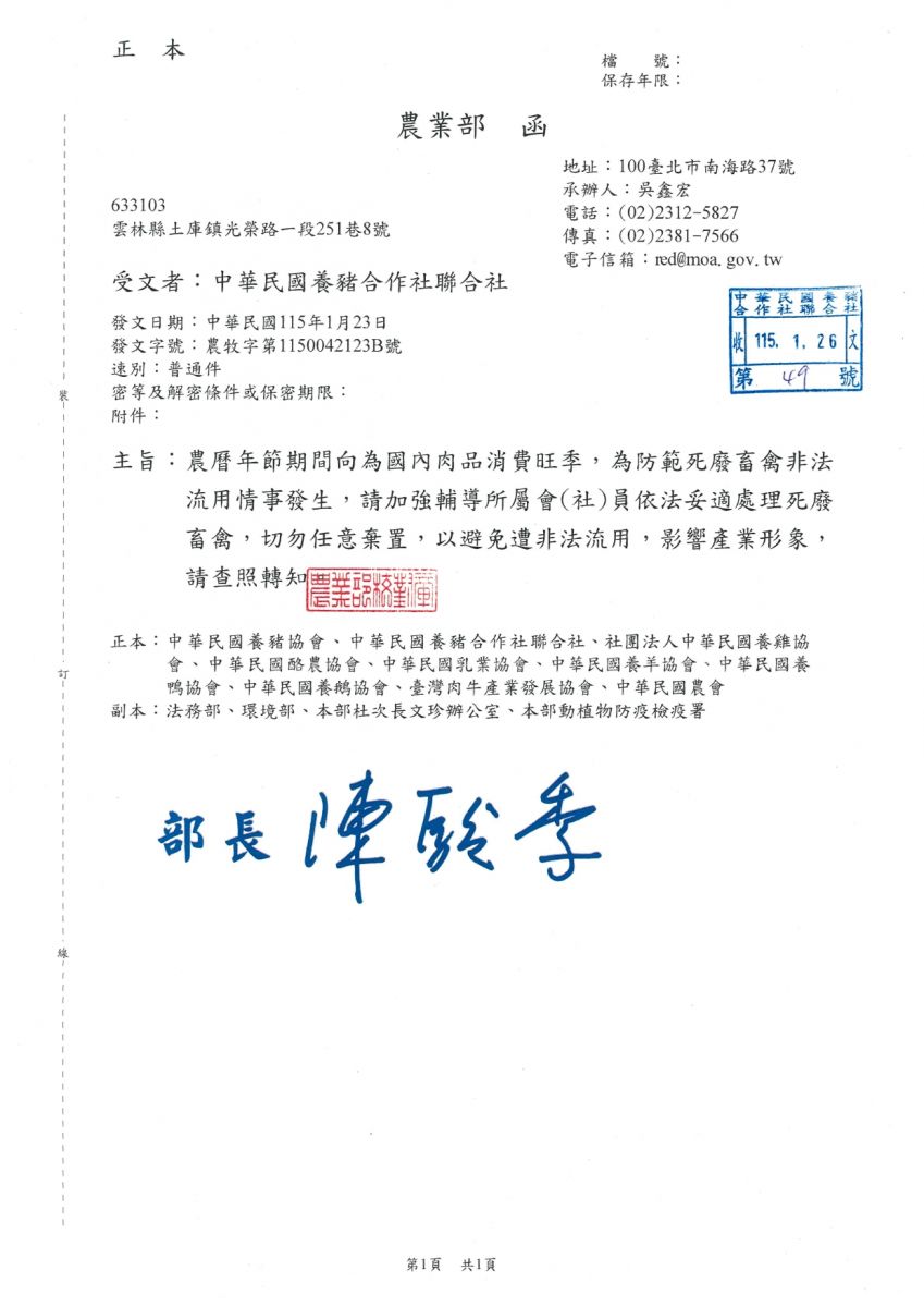 農曆年節期間妥善處理死廢畜禽