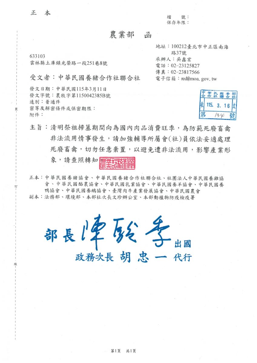 清明祭祖掃墓期間妥善處理死廢畜禽