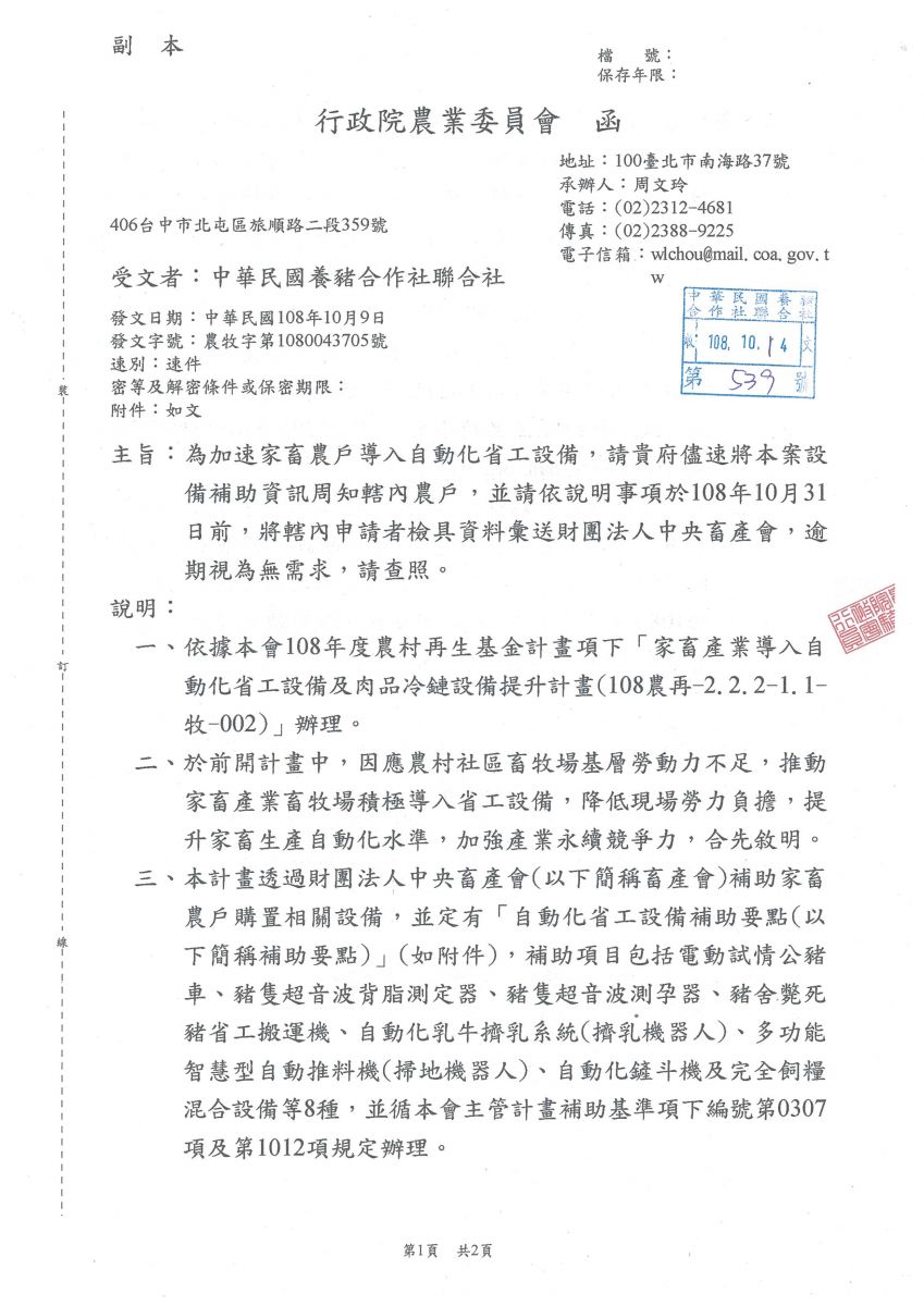 家畜產業導入自動化省工設備及肉品冷鍊設備提升計畫